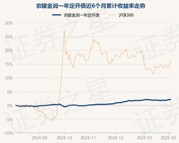 证券之星消息,2月7日,农银金润一年定开债最新单位净值为1.0448元,累计净值为1.1688元,较前一交易日上涨0.0%。历史数据显示该基金近1个月上涨0.09%,近3个月上涨1.92%,近6个月上涨2.1%,近1年上涨5.06%。该基金近6个月的累计收益率走势如下图: