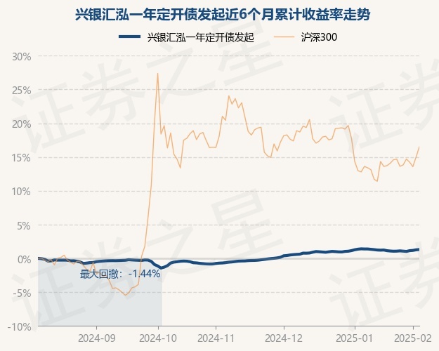 证券之星消息,2月7日,兴银汇泓一年定开债发起最新单位净值为1.0354元,累计净值为1.1079元,较前一交易日上涨0.05%。历史数据显示该基金近1个月下跌0.08%,近3个月上涨1.89%,近6个月上涨1.31%,近1年上涨3.72%。该基金近6个月的累计收益率走势如下图: