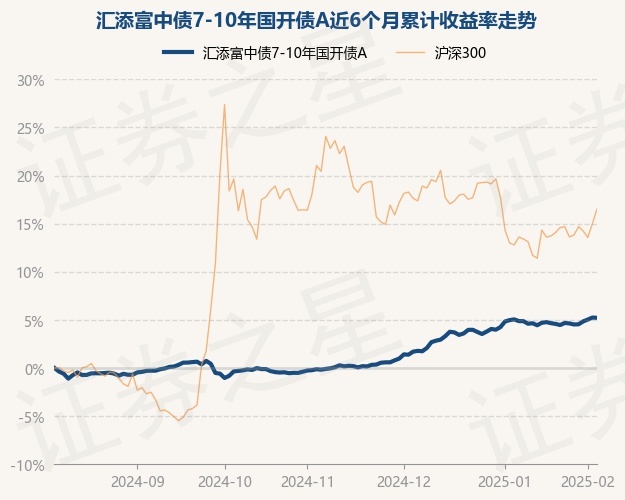 证券之星消息,2月7日,汇添富中债7-10年国开债A最新单位净值为1.2622元,累计净值为1.2682元,较前一交易日下跌0.02%。历史数据显示该基金近1个月上涨0.33%,近3个月上涨5.31%,近6个月上涨5.22%,近1年上涨10.78%。该基金近6个月的累计收益率走势如下图: