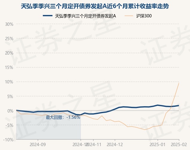 证券之星消息,2月7日,天弘季季兴三个月定开债券发起A最新单位净值为1.1206元,累计净值为1.2421元,较前一交易日上涨0.22%。历史数据显示该基金近1个月下跌0.12%,近3个月上涨2.93%,近6个月上涨1.67%,近1年上涨6.13%。该基金近6个月的累计收益率走势如下图: