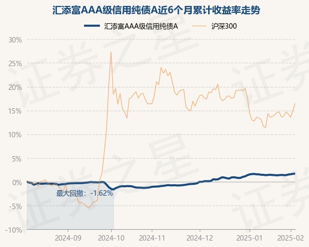 证券之星消息,2月7日,汇添富AAA级信用纯债A最新单位净值为1.174元,累计净值为1.247元,较前一交易日上涨0.02%。历史数据显示该基金近1个月上涨0.13%,近3个月上涨2.62%,近6个月上涨1.71%,近1年上涨4.34%。该基金近6个月的累计收益率走势如下图:
