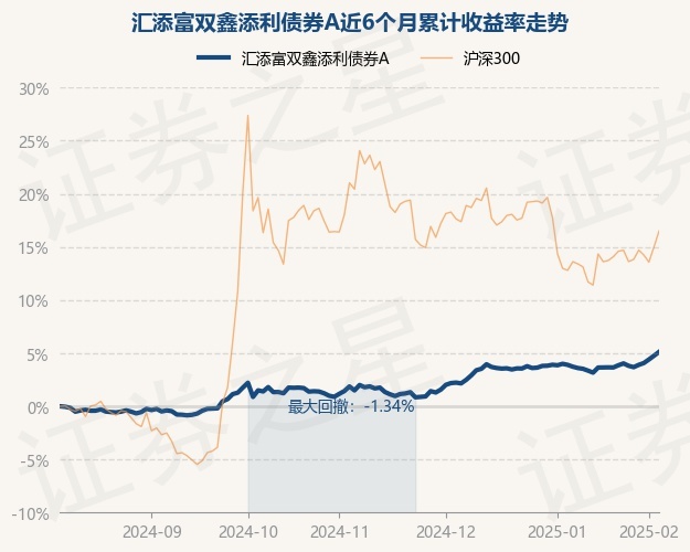 证券之星消息,2月7日,汇添富双鑫添利债券A最新单位净值为1.1644元,累计净值为1.4574元,较前一交易日上涨0.34%。历史数据显示该基金近1个月上涨1.34%,近3个月上涨3.05%,近6个月上涨5.12%,近1年上涨9.76%。该基金近6个月的累计收益率走势如下图: