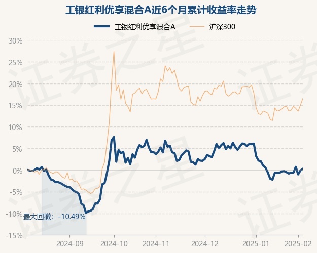 证券之星消息,2月7日,工银红利优享混合A最新单位净值为0.9567元,累计净值为1.2933元,较前一交易日上涨0.37%。历史数据显示该基金近1个月下跌0.73%,近3个月下跌6.11%,近6个月上涨0.26%,近1年上涨18.08%。该基金近6个月的累计收益率走势如下图: