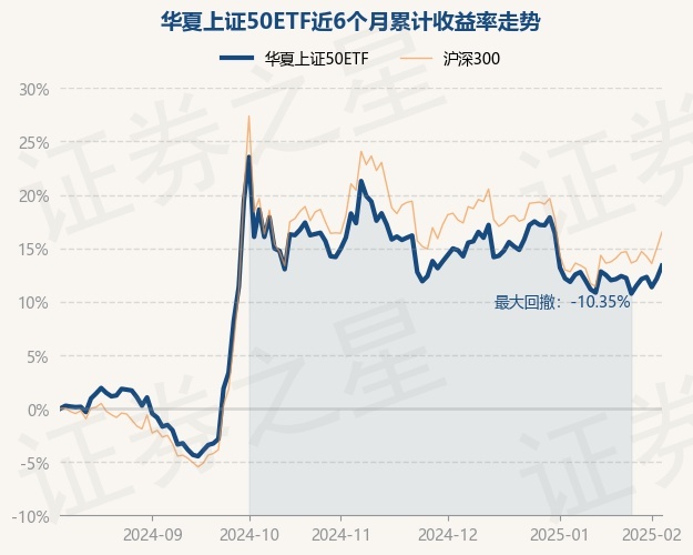证券之星消息,2月7日,华夏上证50ETF最新单位净值为2.6665元,累计净值为4.0055元,较前一交易日上涨1.07%。历史数据显示该基金近1个月上涨0.73%,近3个月下跌6.55%,近6个月上涨13.35%,近1年上涨14.35%。该基金近6个月的累计收益率走势如下图: