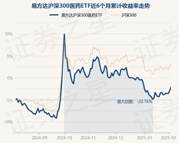 证券之星消息,2月7日,易方达沪深300医药ETF最新单位净值为0.3544元,累计净值为1.4176元,较前一交易日上涨1.49%。历史数据显示该基金近1个月上涨2.96%,近3个月下跌10.64%,近6个月上涨5.66%,近1年下跌4.32%。该基金近6个月的累计收益率走势如下图: