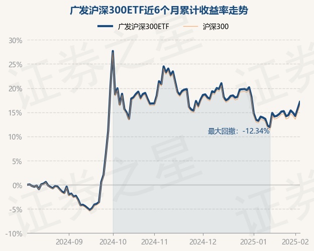 证券之星消息,2月7日,广发沪深300ETF最新单位净值为1.4489元,累计净值为1.4489元,较前一交易日上涨1.29%。历史数据显示该基金近1个月上涨2.69%,近3个月下跌5.9%,近6个月上涨17.15%,近1年上涨19.51%。该基金近6个月的累计收益率走势如下图: