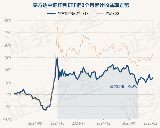 证券之星消息,2月7日,易方达中证红利ETF最新单位净值为1.3221元,累计净值为1.5931元,较前一交易日上涨0.67%。历史数据显示该基金近1个月下跌1.4%,近3个月下跌3.96%,近6个月上涨6.6%,近1年上涨7.29%。该基金近6个月的累计收益率走势如下图: