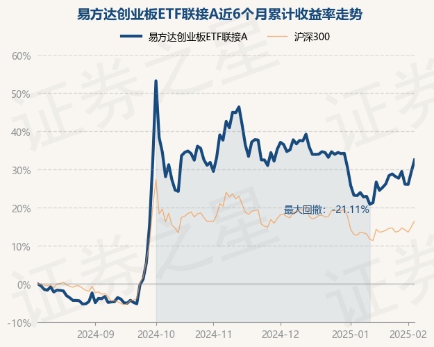 证券之星消息,2月7日,易方达创业板ETF联接A最新单位净值为2.2301元,累计净值为2.2301元,较前一交易日上涨2.39%。历史数据显示该基金近1个月上涨6.9%,近3个月下跌7.07%,近6个月上涨32.53%,近1年上涨26.96%。该基金近6个月的累计收益率走势如下图: