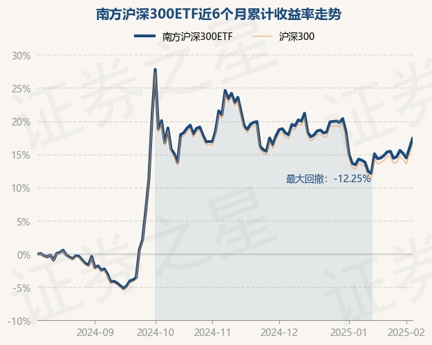 证券之星消息,2月7日,南方沪深300ETF最新单位净值为3.9199元,累计净值为1.7632元,较前一交易日上涨1.29%。历史数据显示该基金近1个月上涨2.73%,近3个月下跌5.8%,近6个月上涨17.39%,近1年上涨19.88%。该基金近6个月的累计收益率走势如下图: