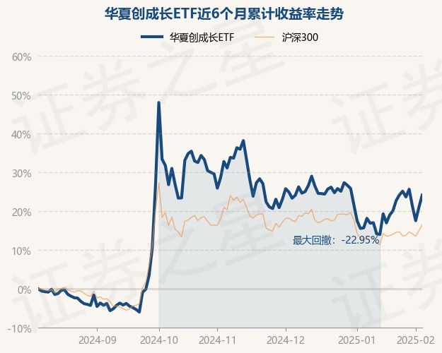 证券之星消息,2月7日,华夏创成长ETF最新单位净值为0.4595元,累计净值为1.6718元,较前一交易日上涨2.59%。历史数据显示该基金近1个月上涨5.05%,近3个月下跌7.27%,近6个月上涨24.16%,近1年上涨21.92%。该基金近6个月的累计收益率走势如下图: