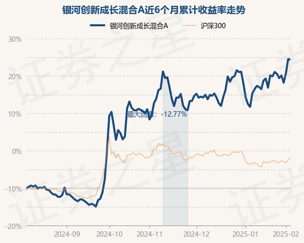 证券之星消息,2月7日,银河创新成长混合A最新单位净值为6.7783元,累计净值为6.7783元,较前一交易日下跌0.15%。历史数据显示该基金近1个月上涨11.9%,近3个月上涨10.68%,近6个月上涨68.73%,近1年上涨85.15%。该基金近6个月的累计收益率走势如下图: