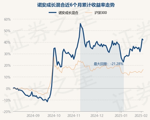 证券之星消息,2月7日,诺安成长混合最新单位净值为1.479元,累计净值为1.924元,较前一交易日下跌0.54%。历史数据显示该基金近1个月上涨11.62%,近3个月上涨1.44%,近6个月上涨41.94%,近1年上涨47.16%。该基金近6个月的累计收益率走势如下图: