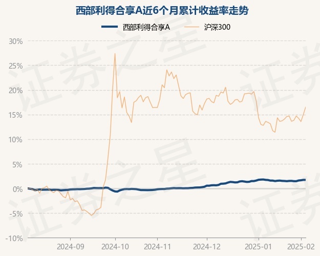 证券之星消息,2月7日,西部利得合享A最新单位净值为1.0486元,累计净值为1.3348元,较前一交易日上涨0.0%。历史数据显示该基金近1个月上涨0.0%,近3个月上涨1.78%,近6个月上涨1.74%,近1年上涨4.19%。该基金近6个月的累计收益率走势如下图: