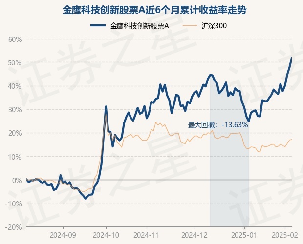 证券之星消息,2月10日,金鹰科技创新股票A最新单位净值为1.6127元,累计净值为1.9487元,较前一交易日上涨2.71%。历史数据显示该基金近1个月上涨19.44%,近3个月上涨12.63%,近6个月上涨51.75%,近1年上涨64.88%。该基金近6个月的累计收益率走势如下图: