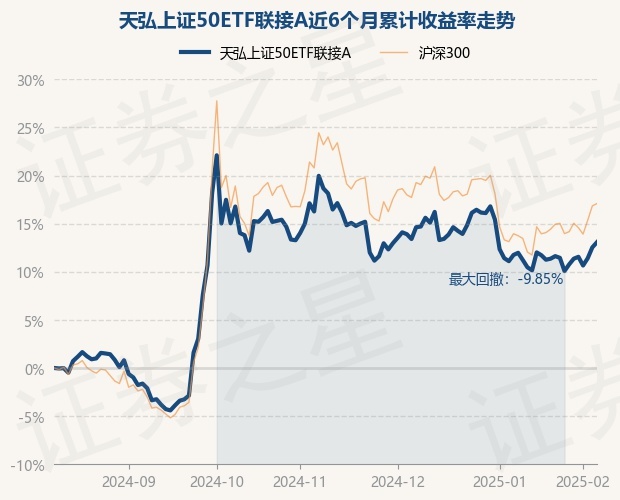 证券之星消息,2月10日,天弘上证50ETF联接A最新单位净值为1.2791元,累计净值为1.2791元,较前一交易日上涨0.48%。历史数据显示该基金近1个月上涨2.36%,近3个月下跌4.71%,近6个月上涨13.07%,近1年上涨13.89%。该基金近6个月的累计收益率走势如下图: