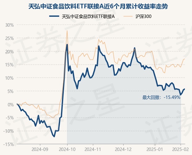 证券之星消息,2月10日,天弘中证食品饮料ETF联接A最新单位净值为2.1311元,累计净值为2.2092元,较前一交易日上涨0.26%。历史数据显示该基金近1个月上涨0.41%,近3个月下跌11.82%,近6个月上涨5.7%,近1年下跌3.78%。该基金近6个月的累计收益率走势如下图: