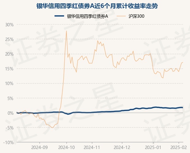 证券之星消息,2月10日,银华信用四季红债券A最新单位净值为1.0902元,累计净值为1.6322元,较前一交易日下跌0.05%。历史数据显示该基金近1个月上涨0.02%,近3个月上涨1.5%,近6个月上涨1.71%,近1年上涨4.06%。该基金近6个月的累计收益率走势如下图:
