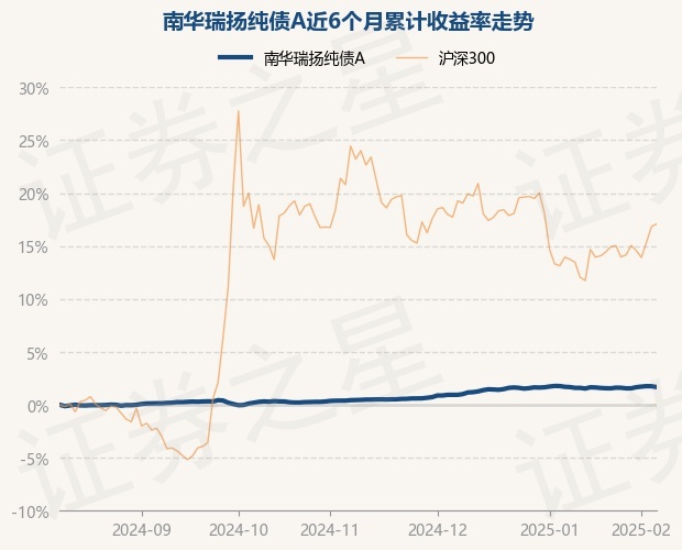 证券之星消息,2月10日,南华瑞扬纯债A最新单位净值为1.1293元,累计净值为1.1293元,较前一交易日下跌0.08%。历史数据显示该基金近1个月上涨0.07%,近3个月上涨1.22%,近6个月上涨1.67%,近1年上涨3.78%。该基金近6个月的累计收益率走势如下图: