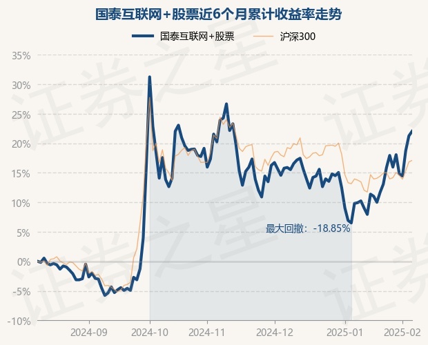 证券之星消息,2月10日,国泰互联网+股票最新单位净值为2.027元,累计净值为2.186元,较前一交易日上涨0.65%。历史数据显示该基金近1个月上涨11.93%,近3个月下跌1.79%,近6个月上涨22.03%,近1年上涨17.85%。该基金近6个月的累计收益率走势如下图: