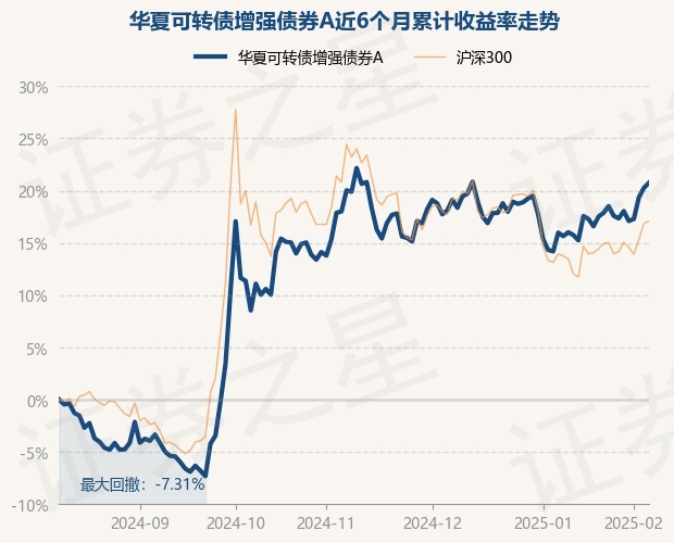 证券之星消息,2月10日,华夏可转债增强债券A最新单位净值为1.352元,累计净值为1.352元,较前一交易日上涨0.4%。历史数据显示该基金近1个月上涨4.31%,近3个月上涨0.71%,近6个月上涨20.75%,近1年上涨19.58%。该基金近6个月的累计收益率走势如下图: