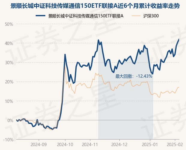 证券之星消息,2月10日,景顺长城中证科技传媒通信150ETF联接A最新单位净值为0.758元,累计净值为0.758元,较前一交易日上涨1.07%。历史数据显示该基金近1个月上涨11.96%,近3个月上涨4.41%,近6个月上涨41.95%,近1年上涨45.49%。该基金近6个月的累计收益率走势如下图: