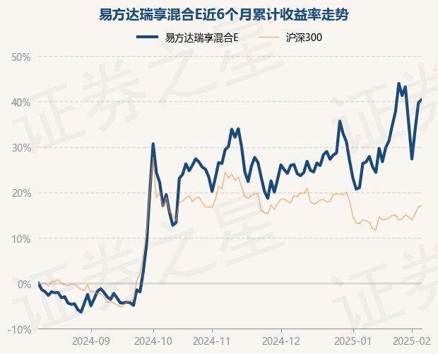 证券之星消息,2月10日,易方达瑞享混合E最新单位净值为2.7028元,累计净值为2.7028元,较前一交易日上涨0.44%。历史数据显示该基金近1个月上涨11.76%,近3个月上涨7.93%,近6个月上涨40.41%,近1年上涨29.26%。该基金近6个月的累计收益率走势如下图: