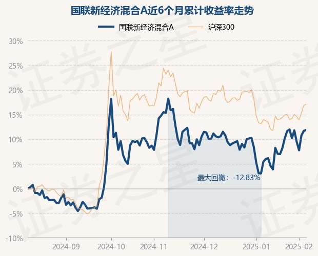 证券之星消息,2月10日,国联新经济混合A最新单位净值为3.121元,累计净值为3.699元,较前一交易日上涨0.16%。历史数据显示该基金近1个月上涨6.96%,近3个月下跌3.01%,近6个月上涨11.86%,近1年上涨10.17%。该基金近6个月的累计收益率走势如下图: