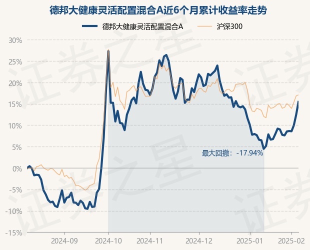 证券之星消息,2月10日,德邦大健康灵活配置混合A最新单位净值为1.2335元,累计净值为1.4501元,较前一交易日上涨2.67%。历史数据显示该基金近1个月上涨10.5%,近3个月下跌6.77%,近6个月上涨15.44%,近1年上涨3.52%。该基金近6个月的累计收益率走势如下图: