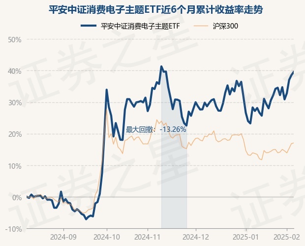 证券之星消息,2月10日,平安中证消费电子主题ETF最新单位净值为0.8808元,累计净值为0.8808元,较前一交易日上涨0.72%。历史数据显示该基金近1个月上涨10.18%,近3个月上涨2.78%,近6个月上涨39.54%,近1年上涨52.36%。该基金近6个月的累计收益率走势如下图: