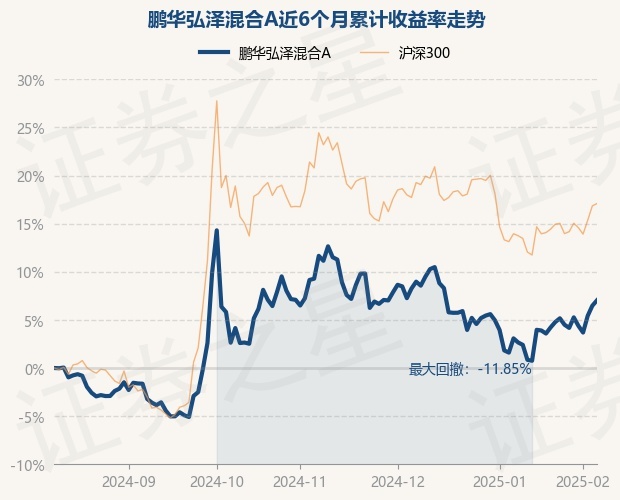 证券之星消息,2月10日,鹏华弘泽混合A最新单位净值为1.5557元,累计净值为1.5557元,较前一交易日上涨0.52%。历史数据显示该基金近1个月上涨6.13%,近3个月下跌3.7%,近6个月上涨7.03%,近1年上涨7.06%。该基金近6个月的累计收益率走势如下图: