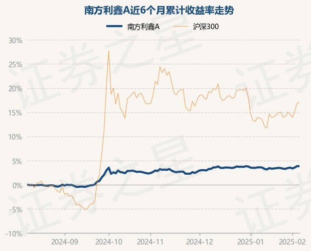 证券之星消息,2月10日,南方利鑫A最新单位净值为1.5368元,累计净值为1.6136元,较前一交易日下跌0.02%。历史数据显示该基金近1个月上涨0.55%,近3个月上涨0.73%,近6个月上涨3.84%,近1年上涨6.28%。该基金近6个月的累计收益率走势如下图: