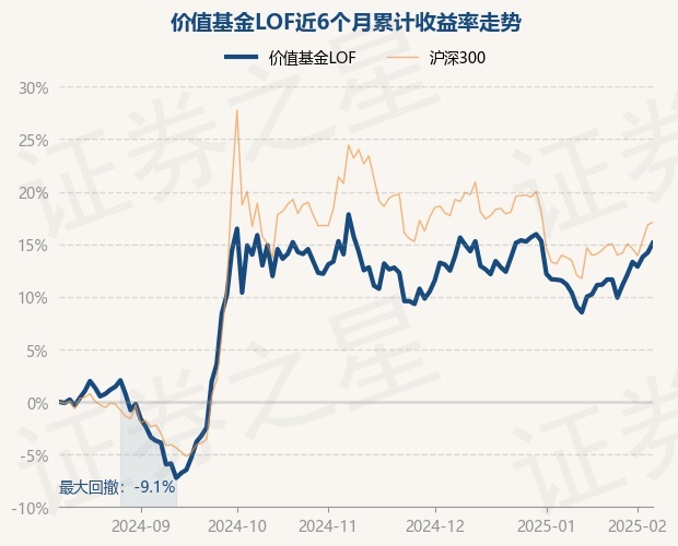 证券之星消息,2月10日,价值基金LOF最新单位净值为1.1444元,累计净值为1.1444元,较前一交易日上涨0.8%。历史数据显示该基金近1个月上涨5.53%,近3个月下跌0.55%,近6个月上涨15.12%,近1年上涨28.05%。该基金近6个月的累计收益率走势如下图: