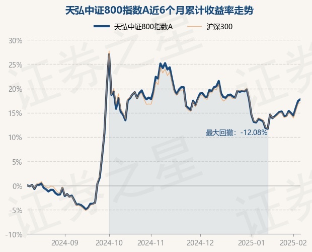 证券之星消息,2月10日,天弘中证800指数A最新单位净值为1.1955元,累计净值为1.1955元,较前一交易日上涨0.31%。历史数据显示该基金近1个月上涨5.3%,近3个月下跌5.16%,近6个月上涨17.78%,近1年上涨17.67%。该基金近6个月的累计收益率走势如下图: