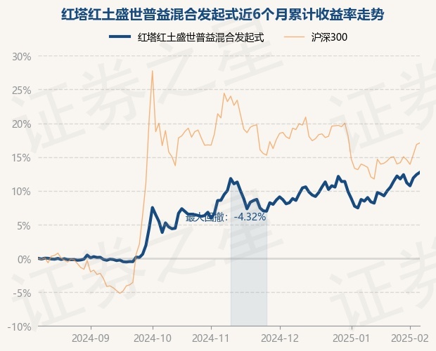 证券之星消息,2月10日,红塔红土盛世普益混合发起式最新单位净值为1.3711元,累计净值为2.0791元,较前一交易日上涨0.29%。历史数据显示该基金近1个月上涨4.03%,近3个月上涨2.44%,近6个月上涨12.73%,近1年上涨17.61%。该基金近6个月的累计收益率走势如下图: