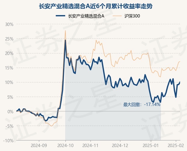 证券之星消息,2月10日,长安产业精选混合A最新单位净值为1.0575元,累计净值为1.2975元,较前一交易日上涨0.74%。历史数据显示该基金近1个月上涨5.76%,近3个月下跌5.43%,近6个月上涨9.98%,近1年上涨5.05%。该基金近6个月的累计收益率走势如下图: