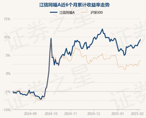 证券之星消息,2月10日,江信同福A最新单位净值为1.5088元,累计净值为1.5473元,较前一交易日上涨0.7%。历史数据显示该基金近1个月上涨7.27%,近3个月上涨1.1%,近6个月上涨28.56%,近1年上涨17.57%。该基金近6个月的累计收益率走势如下图: