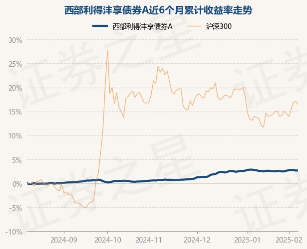 证券之星消息,2月10日,西部利得沣享债券A最新单位净值为1.0668元,累计净值为1.0968元,较前一交易日下跌0.12%。历史数据显示该基金近1个月上涨0.06%,近3个月上涨1.99%,近6个月上涨2.66%,近1年上涨5.27%。该基金近6个月的累计收益率走势如下图: