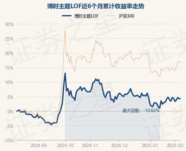 证券之星消息,2月10日,博时主题LOF最新单位净值为0.999元,累计净值为5.694元,较前一交易日下跌0.4%。历史数据显示该基金近1个月上涨2.78%,近3个月下跌5.58%,近6个月上涨4.28%,近1年上涨7.07%。该基金近6个月的累计收益率走势如下图: