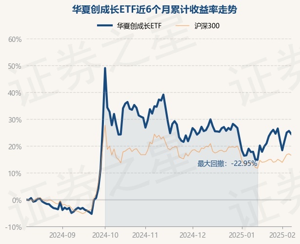 证券之星消息,2月10日,华夏创成长ETF最新单位净值为0.4617元,累计净值为1.6798元,较前一交易日上涨0.48%。历史数据显示该基金近1个月上涨9.25%,近3个月下跌6.69%,近6个月上涨25.63%,近1年上涨21.21%。该基金近6个月的累计收益率走势如下图: