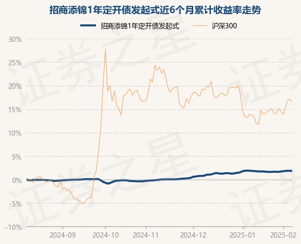 证券之星消息,2月10日,招商添锦1年定开债发起式最新单位净值为1.0709元,累计净值为1.1504元,较前一交易日下跌0.03%。历史数据显示该基金近1个月上涨0.07%,近3个月上涨1.93%,近6个月上涨1.85%,近1年上涨4.19%。该基金近6个月的累计收益率走势如下图: