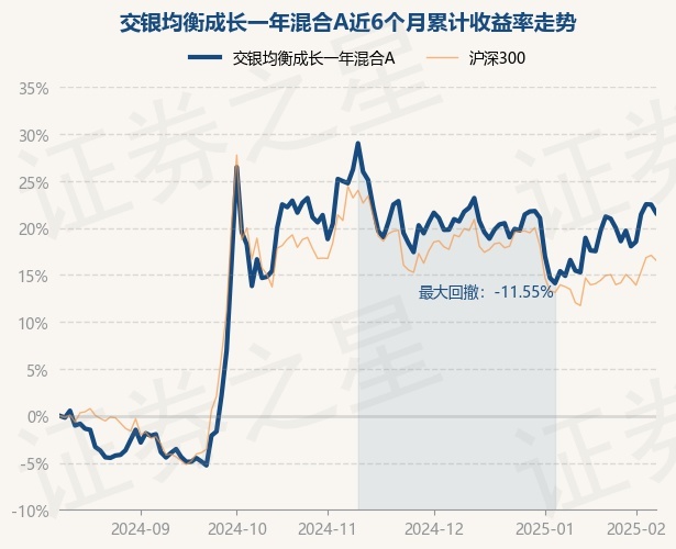 证券之星消息,2月11日,交银均衡成长一年混合A最新单位净值为0.826元,累计净值为0.889元,较前一交易日下跌0.73%。历史数据显示该基金近1个月上涨5.32%,近3个月下跌5.75%,近6个月上涨21.6%,近1年上涨16.8%。该基金近6个月的累计收益率走势如下图: