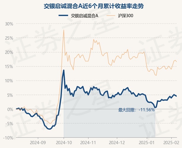 证券之星消息,2月11日,交银启诚混合A最新单位净值为1.0813元,累计净值为1.0813元,较前一交易日下跌0.23%。历史数据显示该基金近1个月上涨3.99%,近3个月下跌2.76%,近6个月上涨4.48%,近1年上涨7.9%。该基金近6个月的累计收益率走势如下图: