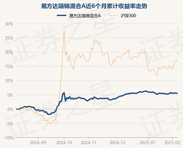 证券之星消息,2月11日,易方达瑞锦混合A最新单位净值为1.27元,累计净值为1.31元,较前一交易日上涨0.03%。历史数据显示该基金近1个月上涨0.11%,近3个月上涨1.8%,近6个月上涨5.53%,近1年上涨11.05%。该基金近6个月的累计收益率走势如下图:
