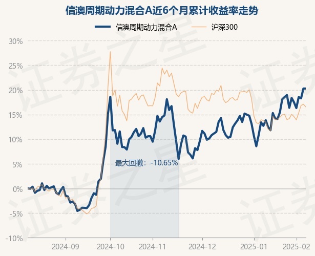 证券之星消息,2月11日,信澳周期动力混合A最新单位净值为1.3171元,累计净值为1.3171元,较前一交易日上涨0.0%。历史数据显示该基金近1个月上涨8.15%,近3个月上涨2.98%,近6个月上涨21.63%,近1年上涨21.68%。该基金近6个月的累计收益率走势如下图: