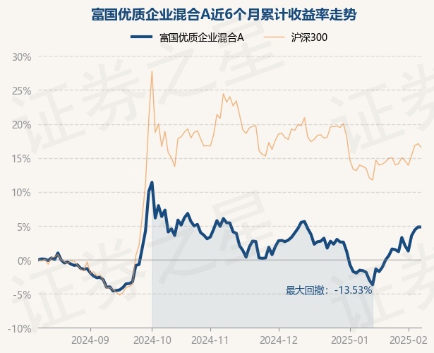 证券之星消息,2月11日,富国优质企业混合A最新单位净值为0.771元,累计净值为0.771元,较前一交易日上涨0.0%。历史数据显示该基金近1个月上涨7.92%,近3个月下跌0.7%,近6个月上涨4.7%,近1年上涨2.95%。该基金近6个月的累计收益率走势如下图: