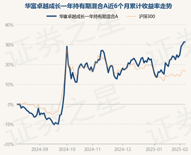 证券之星消息,2月11日,华富卓越成长一年持有期混合A最新单位净值为0.8021元,累计净值为0.8021元,较前一交易日上涨0.0%。历史数据显示该基金近1个月上涨13.45%,近3个月上涨3.59%,近6个月上涨31.45%,近1年上涨19.88%。该基金近6个月的累计收益率走势如下图: