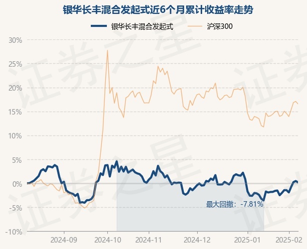 证券之星消息,2月11日,银华长丰混合发起式最新单位净值为1.4175元,累计净值为1.4175元,较前一交易日下跌0.27%。历史数据显示该基金近1个月上涨3.54%,近3个月下跌1.87%,近6个月上涨0.2%,近1年上涨11.53%。该基金近6个月的累计收益率走势如下图: