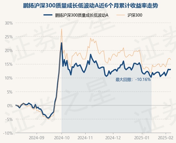 证券之星消息,2月11日,鹏扬沪深300质量成长低波动A最新单位净值为1.016元,累计净值为1.016元,较前一交易日上涨0.08%。历史数据显示该基金近1个月上涨1.97%,近3个月下跌2.71%,近6个月上涨13.03%,近1年上涨15.86%。该基金近6个月的累计收益率走势如下图: