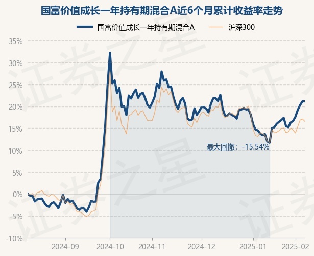 证券之星消息,2月11日,国富价值成长一年持有期混合A最新单位净值为0.8678元,累计净值为1.0132元,较前一交易日上涨0.0%。历史数据显示该基金近1个月上涨7.33%,近3个月下跌4.71%,近6个月上涨20.19%,近1年上涨18.75%。该基金近6个月的累计收益率走势如下图: