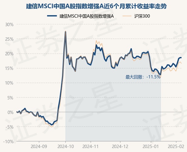 证券之星消息,2月11日,建信MSCI中国A股指数增强A最新单位净值为1.1732元,累计净值为1.4342元,较前一交易日上涨0.0%。历史数据显示该基金近1个月上涨4.52%,近3个月下跌3.22%,近6个月上涨18.12%,近1年上涨18.0%。该基金近6个月的累计收益率走势如下图: